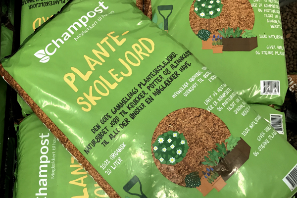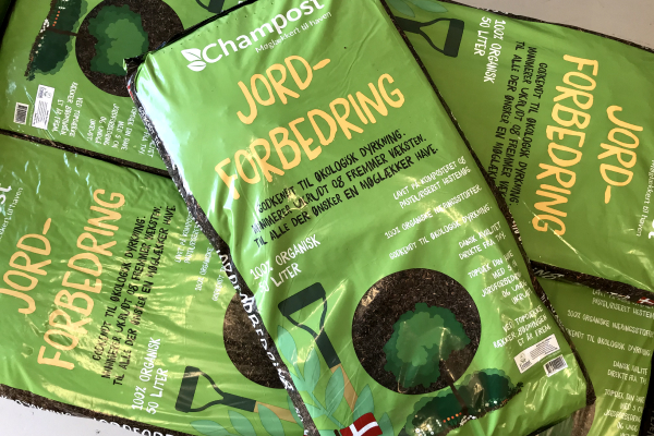 Vi forhandler bl.a. jord og gødningsprodukter fra danske Champost som har hjemme i Thy.