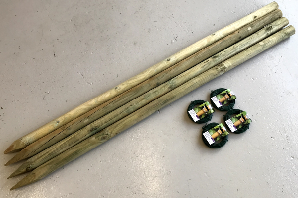 Komplet opbindingskit sikrer at din nyplantet hæk ikke vælter i vinden, får den nødvendige støtte og har bedre mulighed for etablering i jorden. Opbindingskittet bruges primært på planter over 75 cm. i højden målt fra rodhals og til toppen af planten.